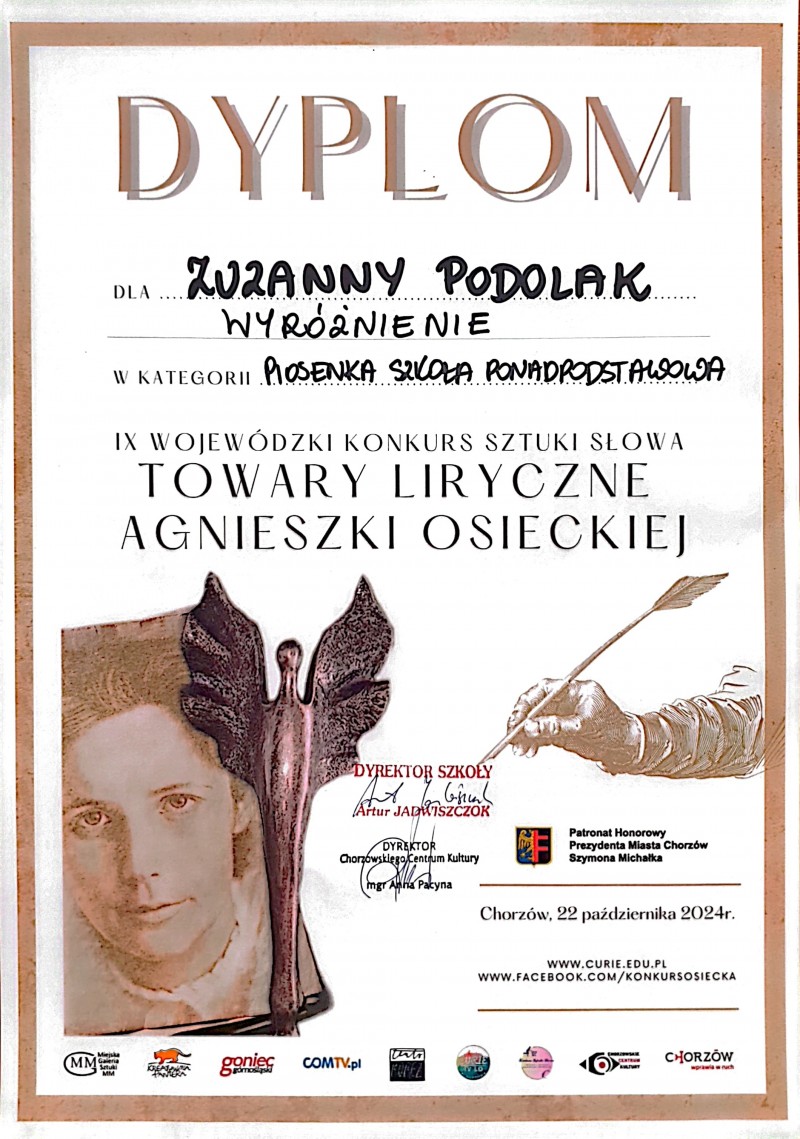 wyróżnienie dla ZUZANNY PODOLAK