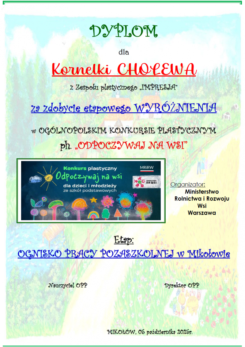 wyróżnienie dla KORNELKI CHOLEWA