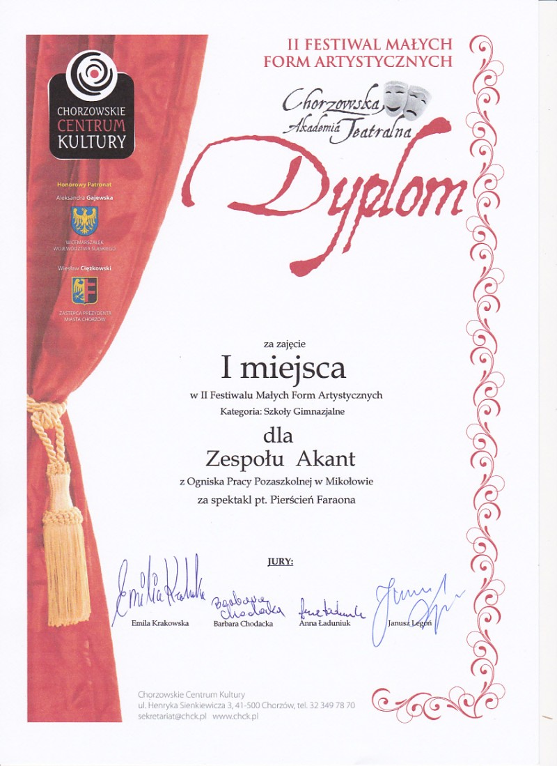 w II Festiwalu Małych Form Artystycznych - organizatorzy: Chorzowskie Centrum Kultury w Chorzowie