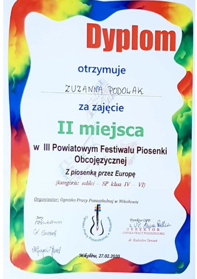 II miejsce dla ZUZANNY PODOLAK