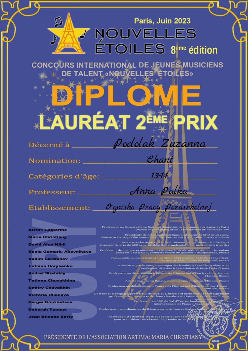 2 miejsce dla ZUZANNY PODOLAK