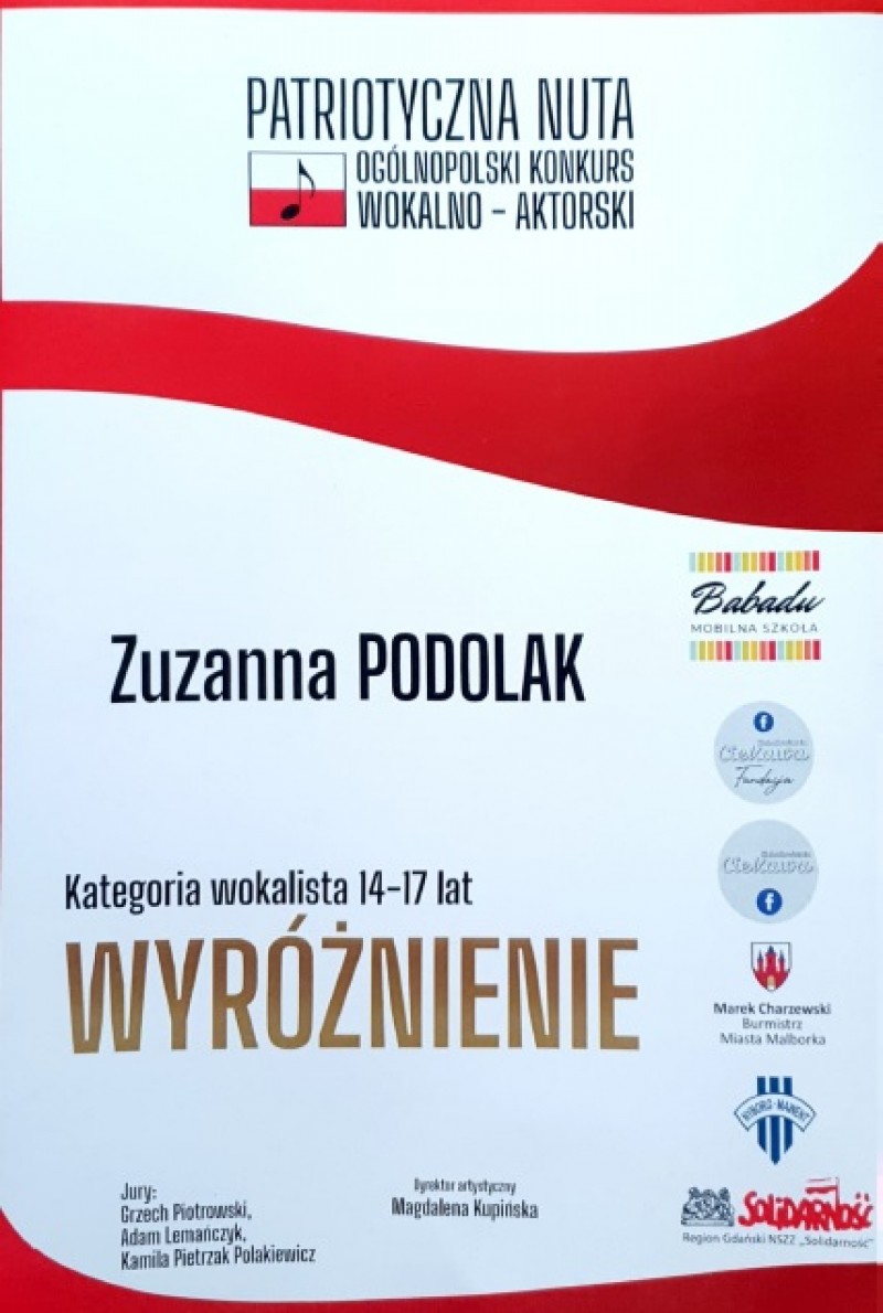 wyróżnienie dla ZUZANNY PODOLAK