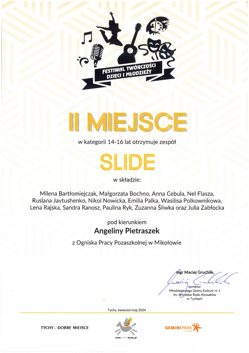 2 miejsce dla zespołu tańca jazzowego SLIDE